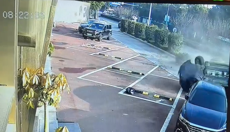 事件发生在一条城市道路上。一辆领克09正常行驶时,前方车辆在转弯过程中未给外道直行车辆让行,导致其冲上绿化带并失控,随后撞击在内道行驶的领克09。撞击导致领克09连续翻滚多圈,最终冲出车道,撞上路边停放的另一辆车辆。