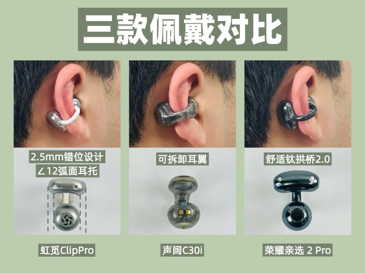 作为一名耳机爱好者,在耳夹式耳机的实测过程中,经常收到很多粉丝私信,问我:学生党想优先兼顾音质、佩戴舒适度和性价比,该怎么选耳夹式耳机。经过多轮实测对比与筛选,我整理出几款三百价位的耳夹式耳机、音质在线、佩戴友好且综合性价比突出的三款机型,分别是虹觅Clip Pro、声阔C30i和荣耀亲选2Pro。