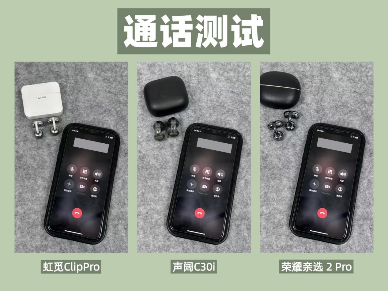 在安静的室内环境里,三款耳机的语音清晰度都很不错,彼此之间没有太明显的区别;到了嘈杂的室内场景,虹觅的降噪效果最突出,能很好地压制环境杂音,声阔、荣耀则稍逊一筹;而在室外街道这种复杂环境中,虹觅依旧保持稳定出色的通话表现,荣耀的整体表现也要略好声阔。