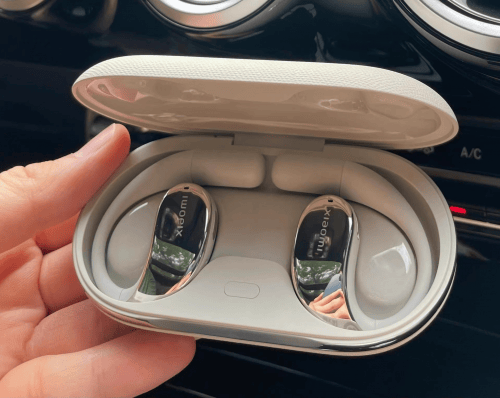 小米开放式耳机单耳约9克,整体造型偏厚但分量感轻,初戴时稳固舒适。耳挂采用硬挺支撑结构,日常佩戴贴合度不错,但对小耳型用户的兼容性一般,长时间使用后耳后部位可能产生轻微压迫感。整体更适合通勤、办公或轻运动场景,短时间使用体验尤佳。