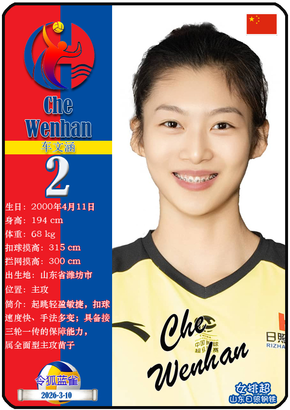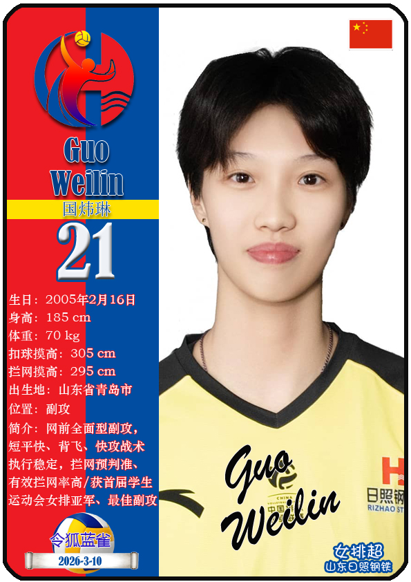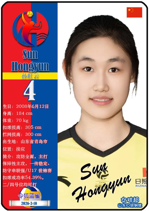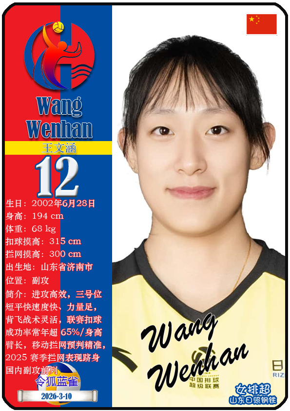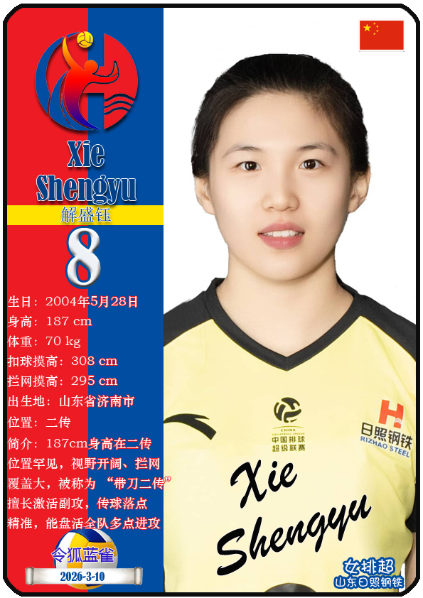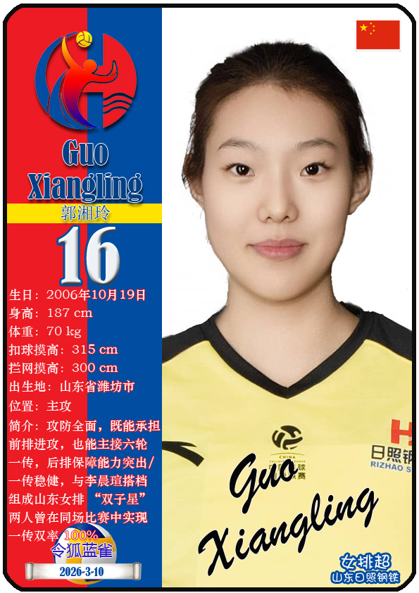 山东日照钢铁女子排球俱乐部成立于2002年6月5日,距今已有24年历史。目前球队主教练是李岩龙,队内拥有球员王晨旭、车文涵、宋嘉逸等,本期盘点截至2026年3月10日排超山东日照钢铁女排的16名球员(按球衣号码排序):