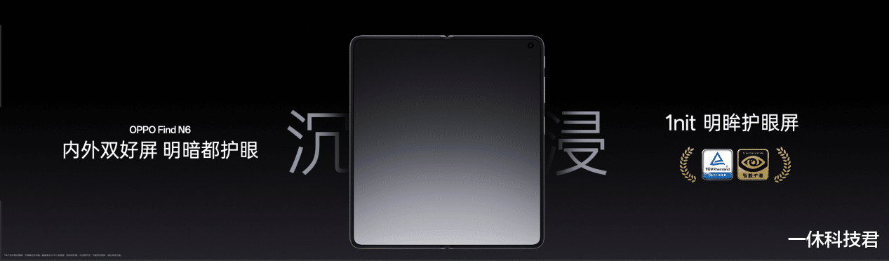 屏幕素质方面,OPPO Find N6 延续 OPPO 在显示领域的绝对领先优势,内外双屏均搭载 1nit 明眸护眼屏,暗光下显示均匀清晰,告别抹布屏困扰;内外屏全局峰值亮度提升至 1800nits,烈日强光下依然清晰可见。同时,这块屏幕更通过了德国莱茵 TÜV「金标」护眼认证,提供「亮光看得清,暗光更护眼」的全场景舒适体验。