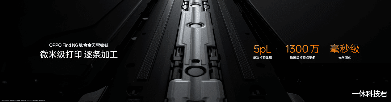 「新一代钛合金天穹铰链」,率先打破传统精密加工的极限。铰链采用行业首个仿生对称四轴结构,相较传统三轴铰链,扭力提升 20% 的同时,让铰链表面起伏从 0.18 mm 降至 0.1 mm,支撑面更广、受力更均匀,开合手感丝滑如一。但 0.1 mm 的起伏依然不够,OPPO 追求的是极致的平整。为此,OPPO 开创性地将芯片领域的精密加工技术应用于铰链制造,带来行业首创「芯片级高分子 3D 打印技术」,让铰链中板平整度至高提升 75% ,将微观天堑化为坦途。OPPO 更打造了行业首个专为平整而生的产线,让每一台 Find N6 的铰链都拥有极致统一的平整表现。