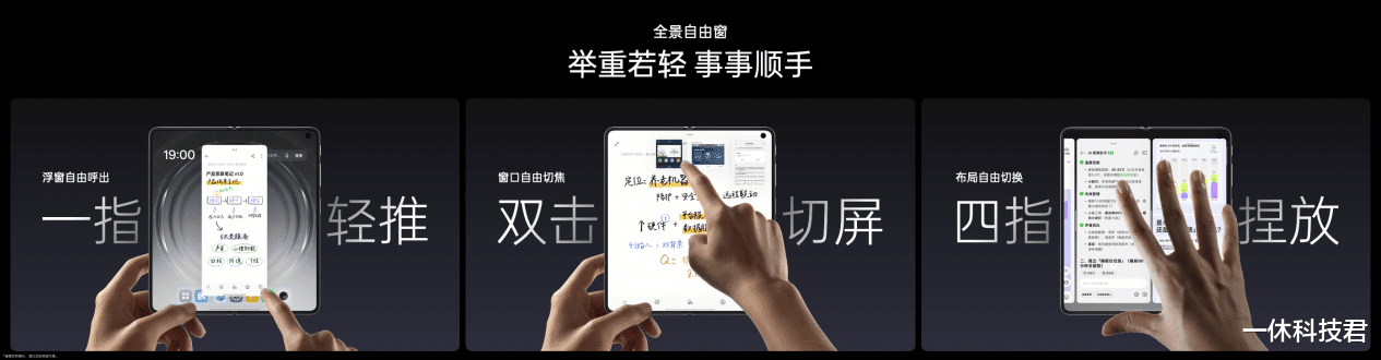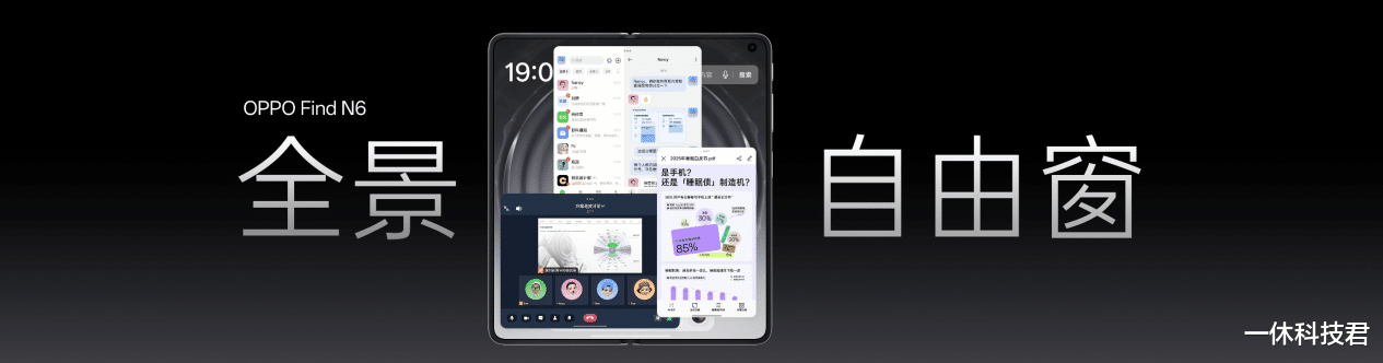 OPPO Find N6 更带来全面升级的全景自由窗分屏方案,彻底打破传统分屏的僵硬边界,实现了超越 PC 级的多窗口自由体验。用户只需一根手指,从边角向内轻推即可将应用从全屏变为浮窗,一推一拉就能无极调节窗口大小与比例;四指捏放即可在分屏与浮窗布局之间秒切,真正实现轻松拿捏多任务。全景自由窗最多支持 4 个应用窗口同时开启,可自由平铺、堆叠、悬挂,投资看盘、会议办公、合同对照等场景都能找到最顺手的布局解法。