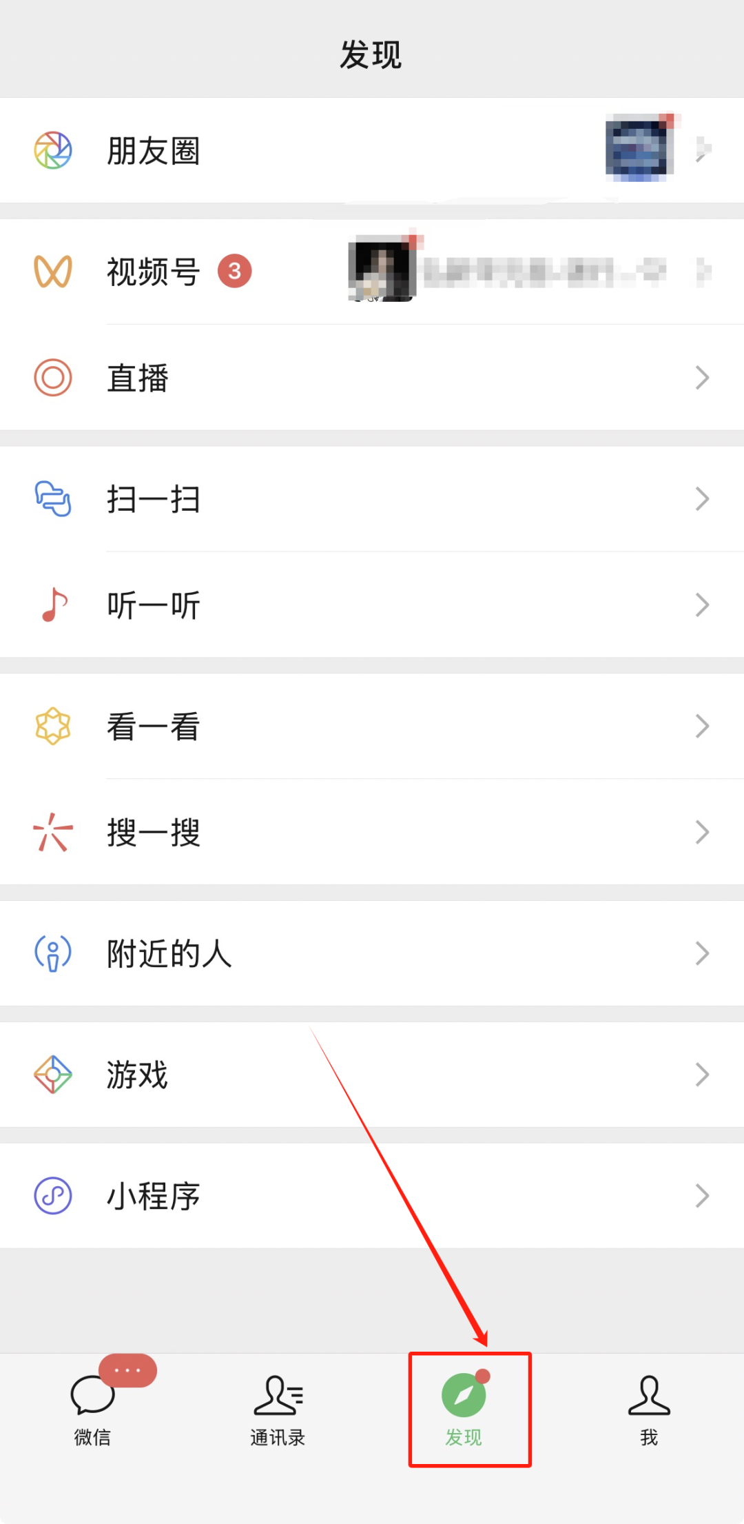 打开微信App,点击界面底部“发现”选项。