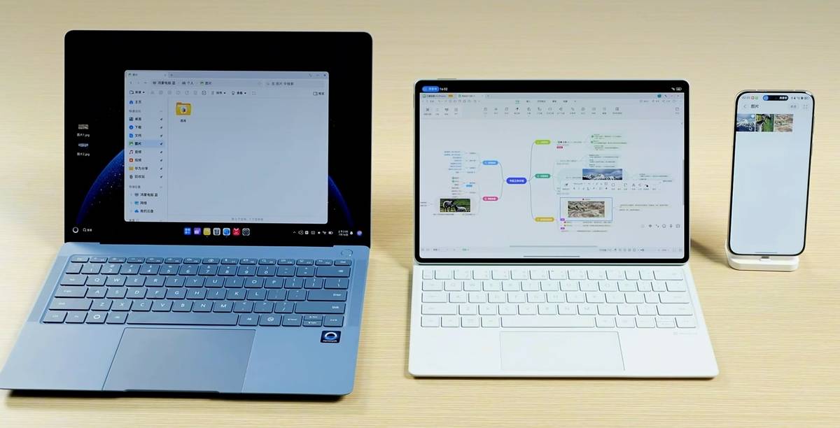“统一拖拽”不仅在单设备上好用,不同设备之间的协作更是牛。只需要在鸿蒙设备的设置中打开“键鼠共享”,鼠标就能在电脑、平板和手机之间来回控制。比如,我想从平板端传一张照片到电脑桌面,只需要用鼠标按住平板上的照片不松手,再放到电脑上就行,这下真的彻底可以跟文件传输助手说拜拜了。