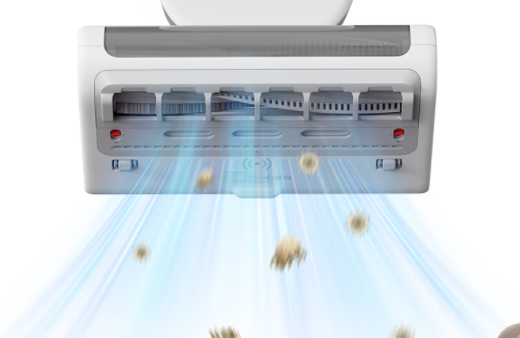 搭载 400W 高性能电机,吸力 14kPa,20cm 宽吸口,清洁效率很高,不用来回反复推。专利电动滚刷每分钟 48000 次拍打,螺旋刷毛不伤织物,床品、窗帘都能放心用。