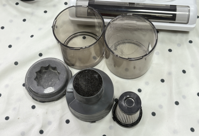 0.4L 可视化胶囊尘杯一键拆卸,清理很方便,缺点是单尘杯设计,尘螨和灰尘二次分离效果一般,过滤性能稍打折扣,但日常基础除螨完全够用,性价比在同价位很能打。
