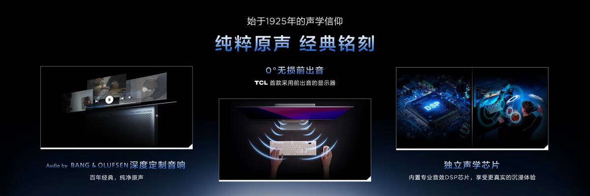 顶尖影音体验的完整性,也离不开优质的音质表现。TCL为X3A量身定制了与Bang & Olufsen联合开发的整机声学方案,搭载前出式声巢音响系统,声音从屏幕底部正面直达用户双耳,还原更真实、更立体的声场,带来殿堂级的纯净声学享受。音响系统内置专业音效DSP芯片,配合B&O专属声学调校,不仅能提升声音的空间感和层次感,还能强化游戏中脚步声、枪声等关键音频的方位感与距离感,帮助玩家精准听声辨位,预判敌人位置,沉浸感拉满。