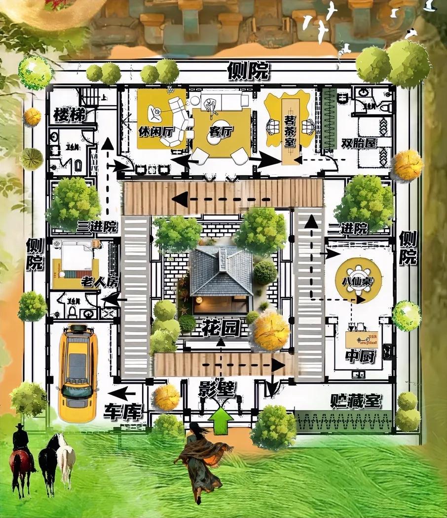 一进院拿风雅,二进院留白,三进院跟随,四进侧院做后场,搭配一流传统格局!