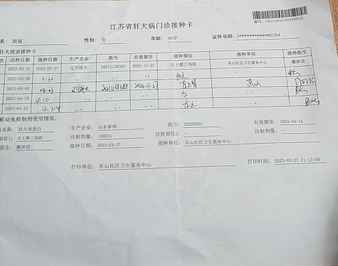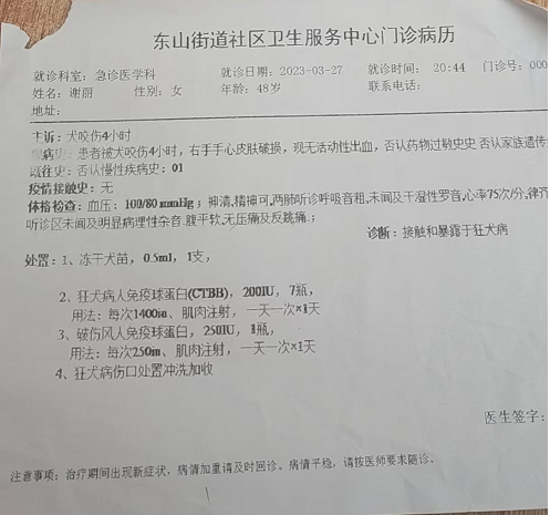 无奈之下,谢丽先前往附近的程桥医院就诊,但由于医院没有接种狂犬疫苗的设备,她只能转而前往江宁医院。在江宁医院,谢丽接受了紧急处理,并接种了狂犬疫苗和免疫球蛋白,以防止狂犬病的发生。然而,这场无妄之灾不仅给谢丽的身体带来了伤害,更在她的心灵上留下了难以磨灭的阴影。