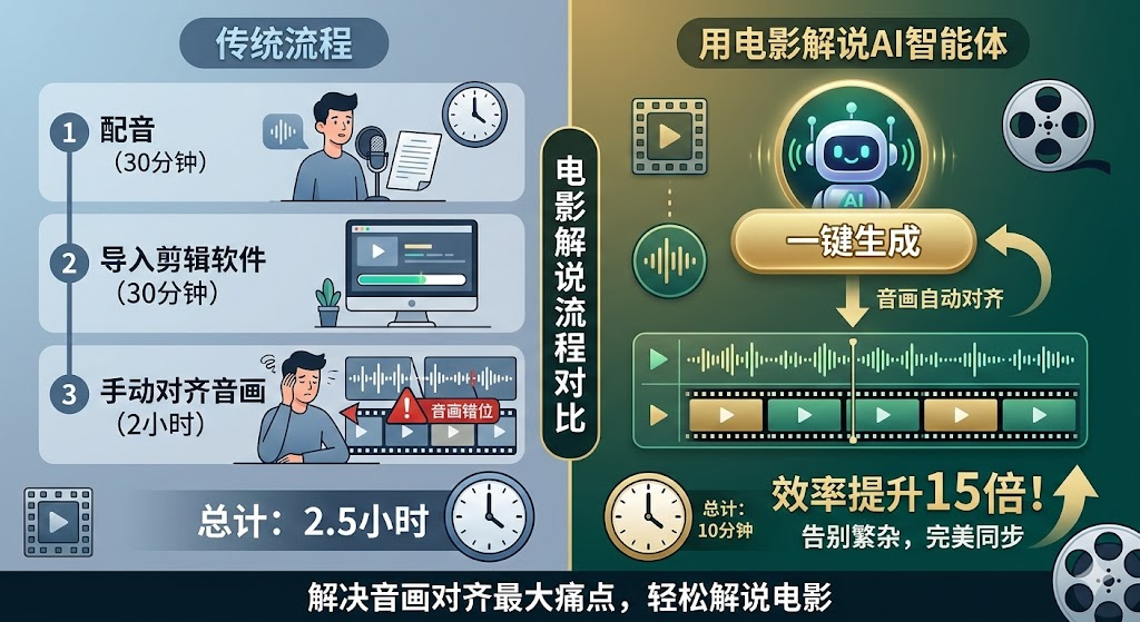 为什么推荐电影解说AI智能体?核心原因:它解决了配音最大的痛点——音画对齐。