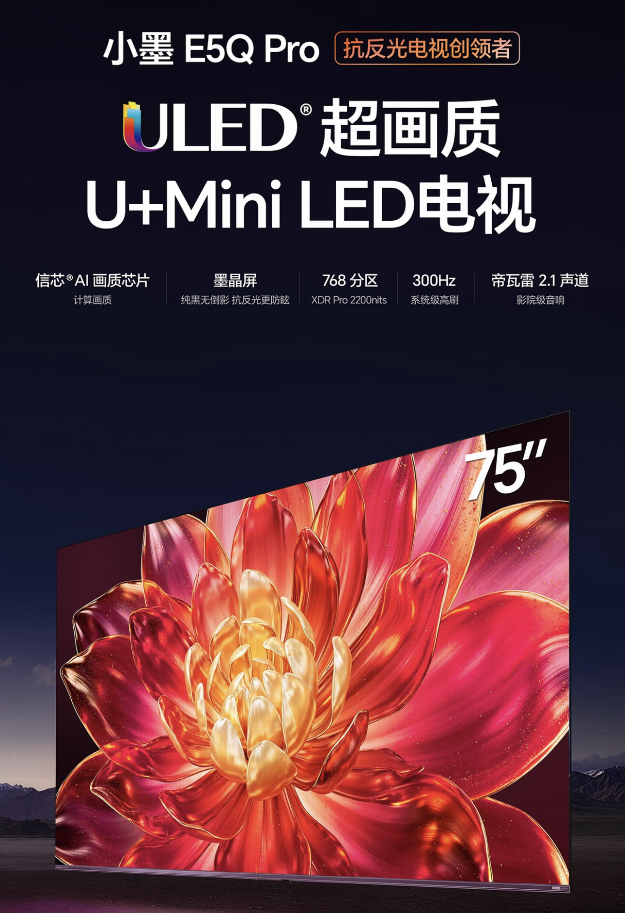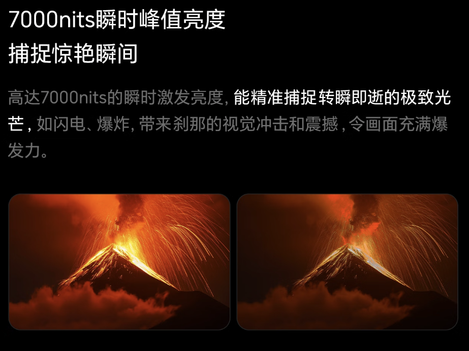 瞬时峰值亮度——它决定了电视在显示高动态范围(HDR)内容时,能否真实还原画面中的高光细节,更高的峰值亮度意味着更强的HDR还原能力和更具冲击力的视觉体验。E7Q的瞬时峰值亮度也同样领先,百寸大屏款尤其夸张,达到了7000nits,比Q10L的5000nits高出40%。