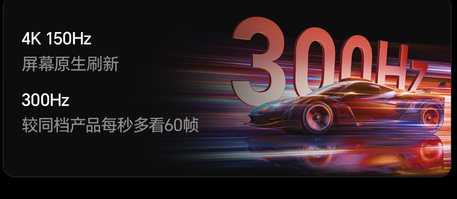 刷新率方面,E5Q Pro拥有4K 150Hz原生高刷和行业首发的300Hz疾速高刷,在这组对比中领先其他所有款式。
