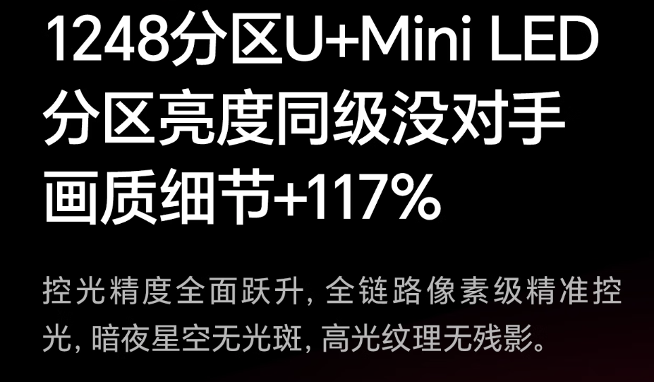 背光分区——分区背光是将显示屏的背光层划分成了多个区域进行调控,不同区域可以显示出不同的亮度,它弥补了传统显示屏对比度低和无法显示纯黑色的缺点。理论上,背光分区数量越高,屏幕所配备的LED芯片和IC芯片越多,对光源的控制就更精准,屏幕画质上的提升也就愈发明显。E7Q的背光分区数量,比Q10L的背光分区数量高出10%-20%,E7Q的百寸大屏款更是达到了惊人的4224分区。