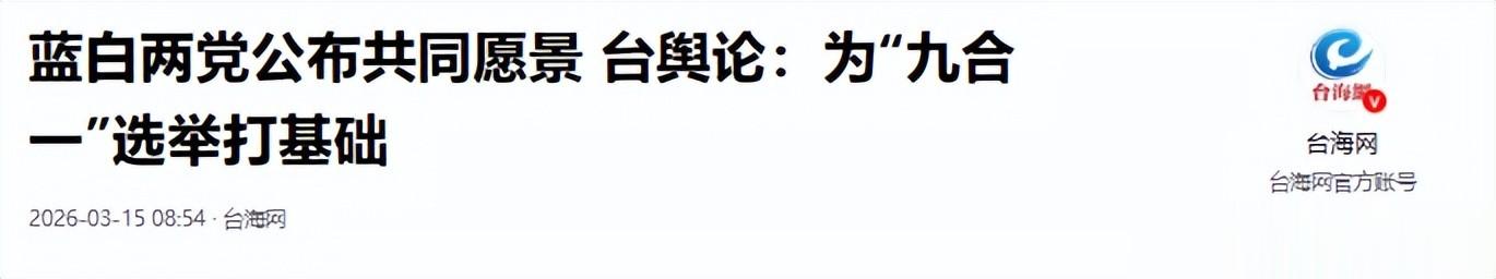 台海网——蓝白两党公布共同愿景 台舆论:为 “九合一” 选举打基础