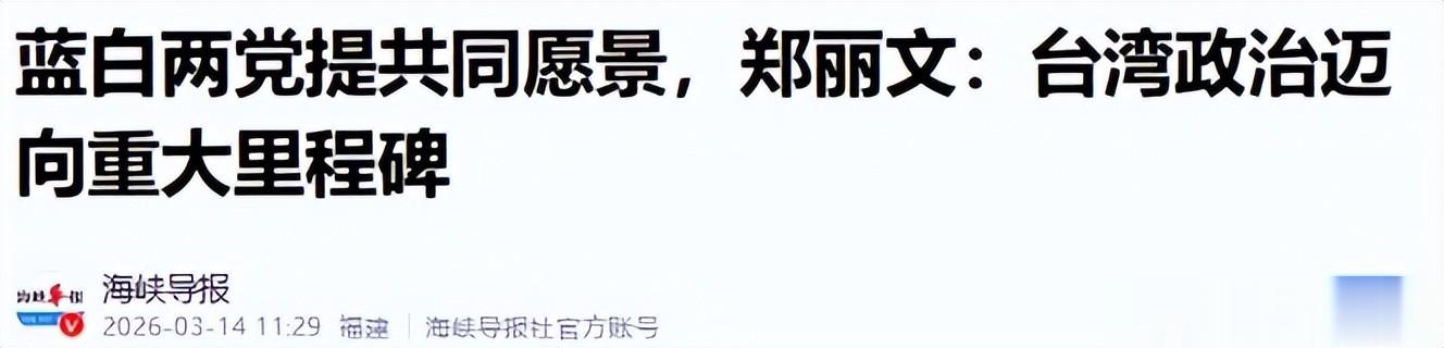 海峡导报——蓝白两党提共同愿景,郑丽文:台湾政治迈向重大里程碑