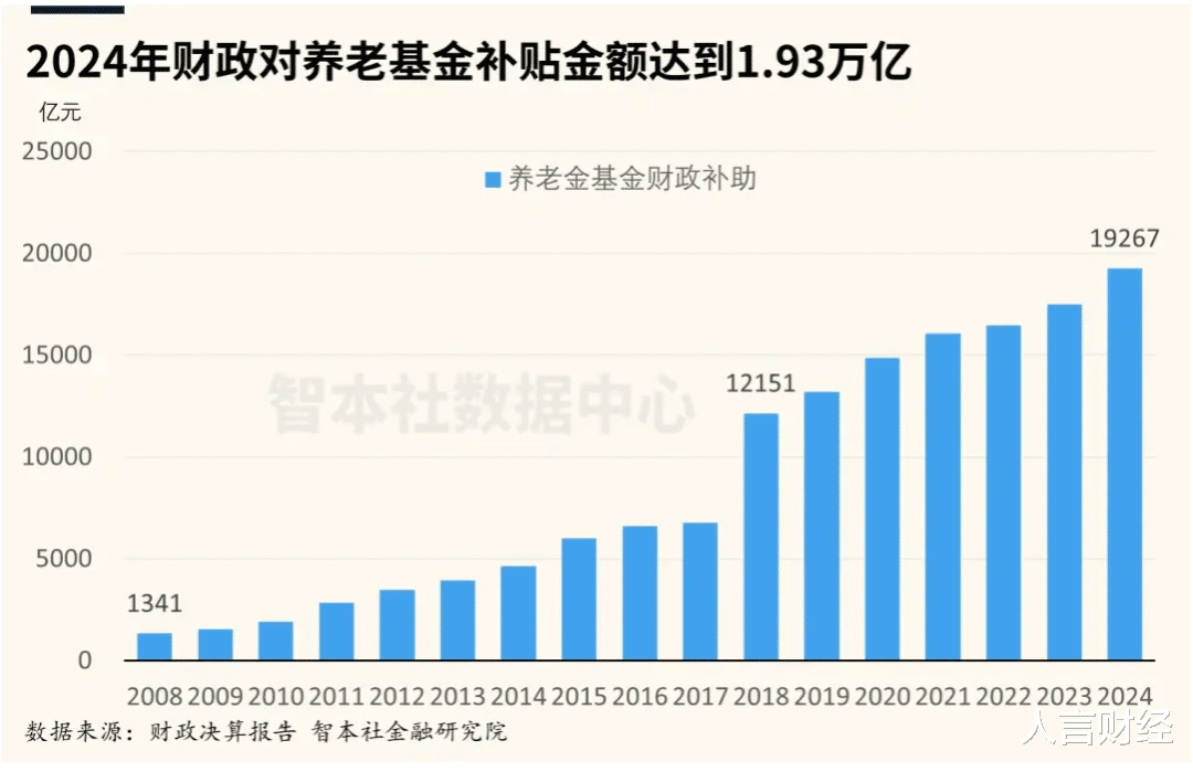 2008年财政补贴只有1341亿元,2018年达到12151亿元,到2024年飙升至19267亿元——