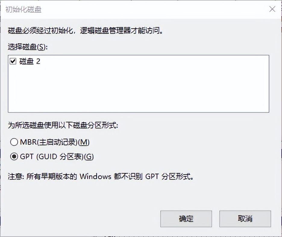右键菜单选择 初始化磁盘