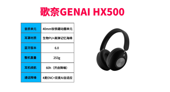 二、五款热门头戴式耳机深度横评歌奈GENAI HX500