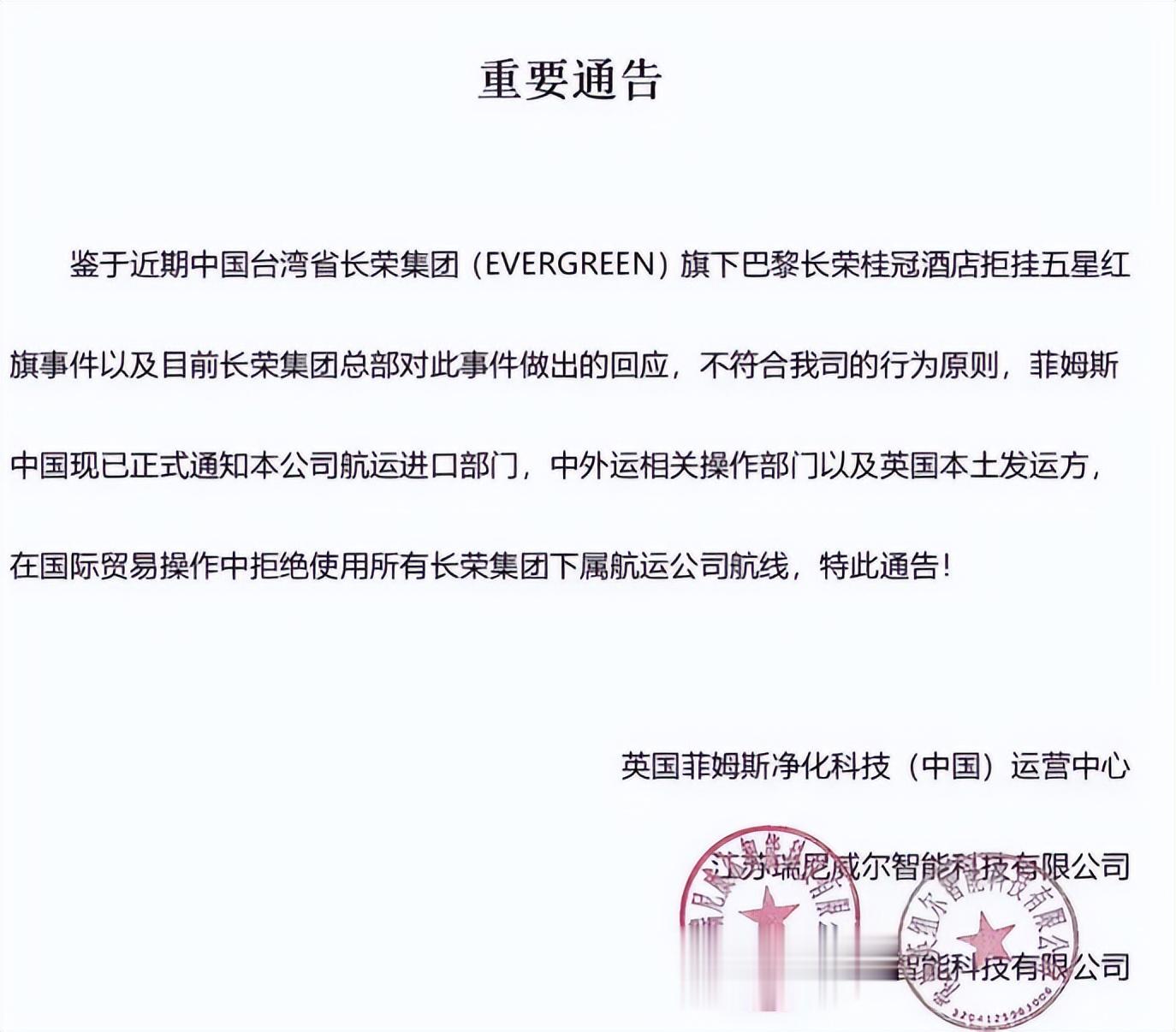 而长荣后续发布的道歉声明毫无诚意,仅简单提及“九二共识”,其官网还依旧将“台湾”和“中国”并列,并未真正纠正错误。