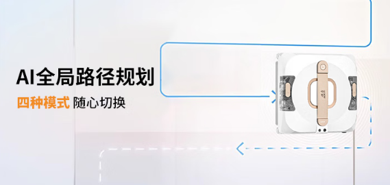 内置智慧芯片支持一键托管式擦窗,无需手动干预即可自动完成清洁,搭配4种清洁模式,可灵活适配不同尺寸、脏污程度的玻璃,解决模式单一、适配性差的痛点。
