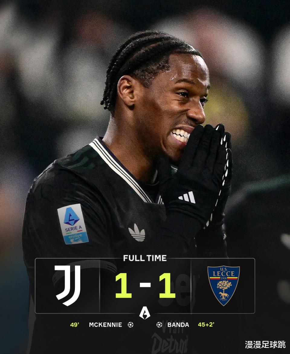 随后,尤文一度完全压制对手,并获得了点球机会。但是乔纳森-戴维却把球给罚丢,痛失反超良机。接下来,尤文的进攻开始变得急躁,莱切则全线回收死守,最终将1-1的比分保持到终场,爆了不小的冷门。