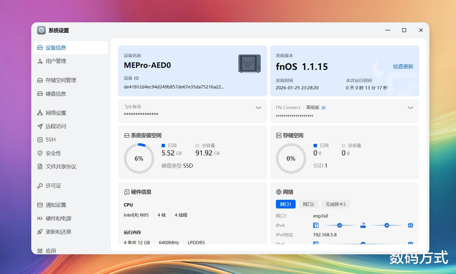 我手中的这台预装了飞牛OS,其实大家都应知道飞牛目前已经与零刻建立了全面合作,一个负责软件一个负责硬件,软硬件的深度优化,解决了NAS常见的兼容性和稳定性问题。