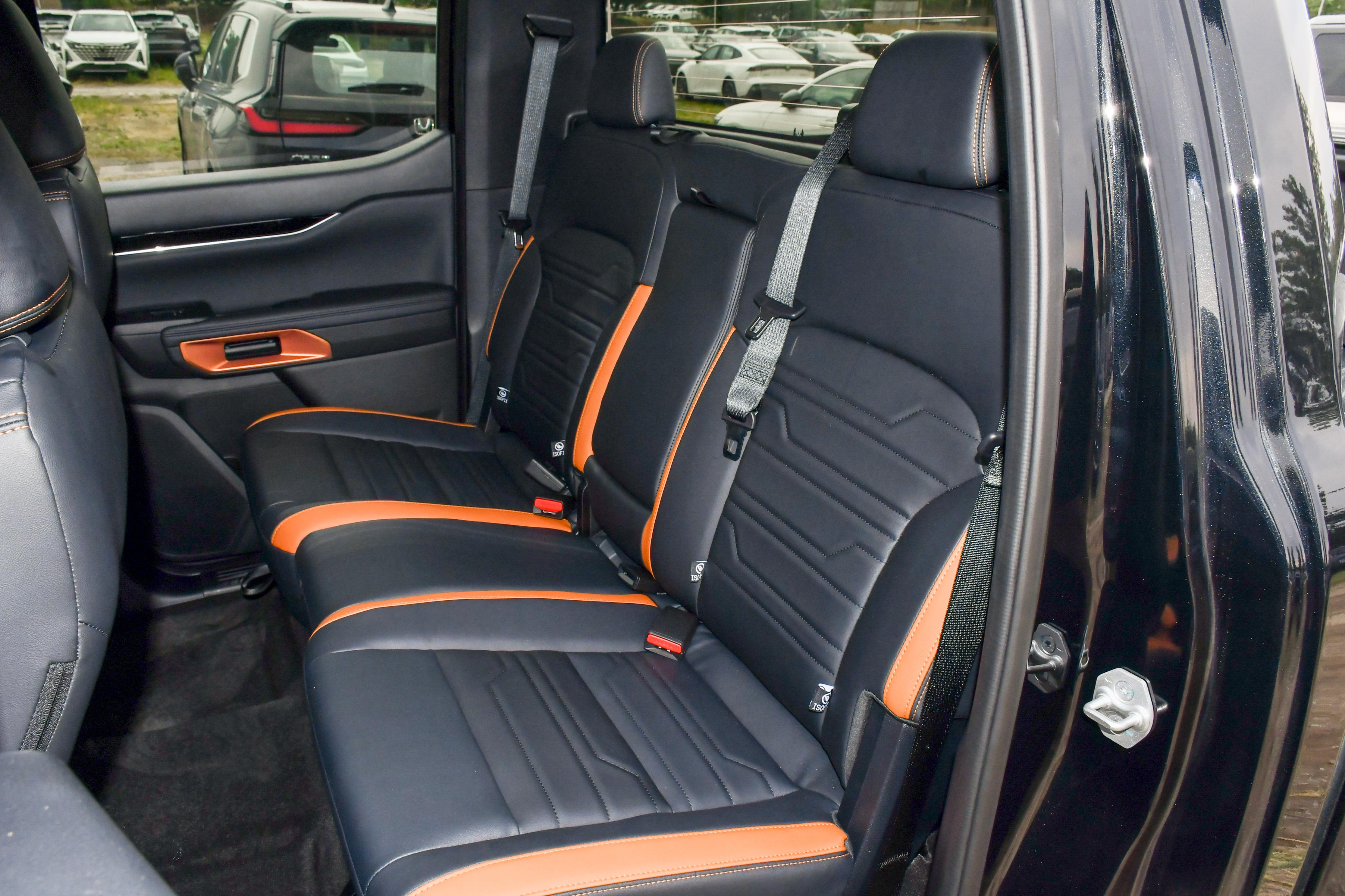 我实际坐过2025款福特游骑侠的后排,五座布局下的空间表现挺实在的。腿部空间属于中等水平,座椅的靠背角度比较直,长途坐着要是想更放松,确实配个腰靠支撑会更舒服。要是拉点大件东西,把后排座椅放倒就能立刻腾出额外的储物空间,载物灵活性一下子就上来了,这点很实用。座椅全都是真皮包裹,摸着手感不错。前排标配电动调节和加热,冬天上车不用等。高配版本还有通风功能,夏季使用很惬意。座椅靠背的设计也符合人体工学,不管是去越野走烂路,还是日常家用长途出行,整体的基础舒适性都能满足需求。