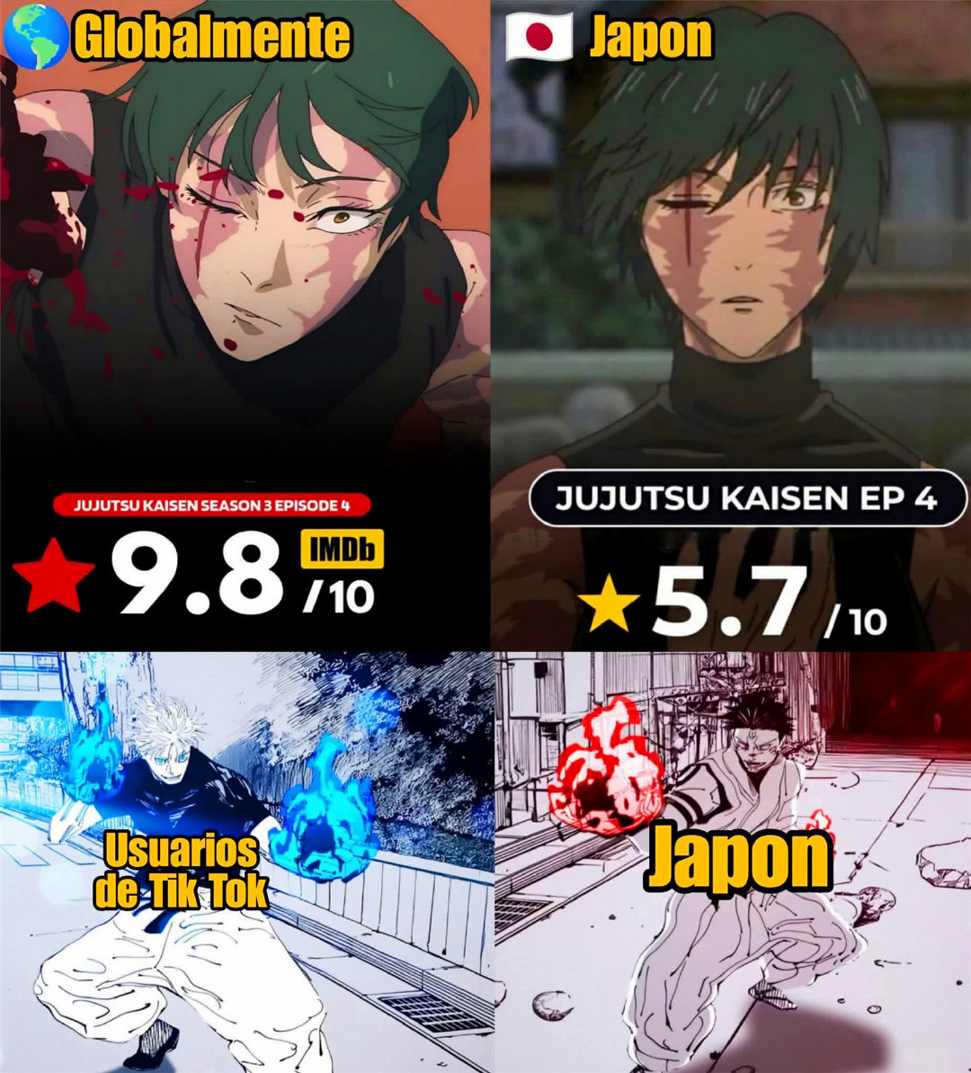 那就是《咒术回战》第三季第四集播出后,日本本土粉丝给出的评价与欧美地区粉丝的打分呈现出两极分化的意外情况。根据网友们的分享,在日本社群里,大家虽然肯定了MAPPA的制作品质,但是也表达了自己的失望和不满,平均打分大概只有5.7分(10分满分);而欧美粉丝则在IMDb上弄出了9.8分(10分满分)的超高评分,认为作品接近完美。值得注意的是:博士看到两派粉丝后续还在社群里展开了交锋,吵了起来!
