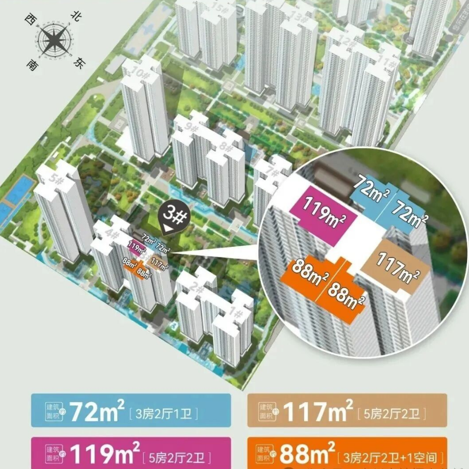 1-3期现房剩少量单位,可选楼层不多,户型有70㎡三房,80㎡3+1房以及130㎡4+1房,总价不到180万就能上车。期房是四期,但交楼时间是26年8月,算是准现房,户型有72㎡三房,88㎡3+1房以及119㎡4+1房,总价在200-330万。