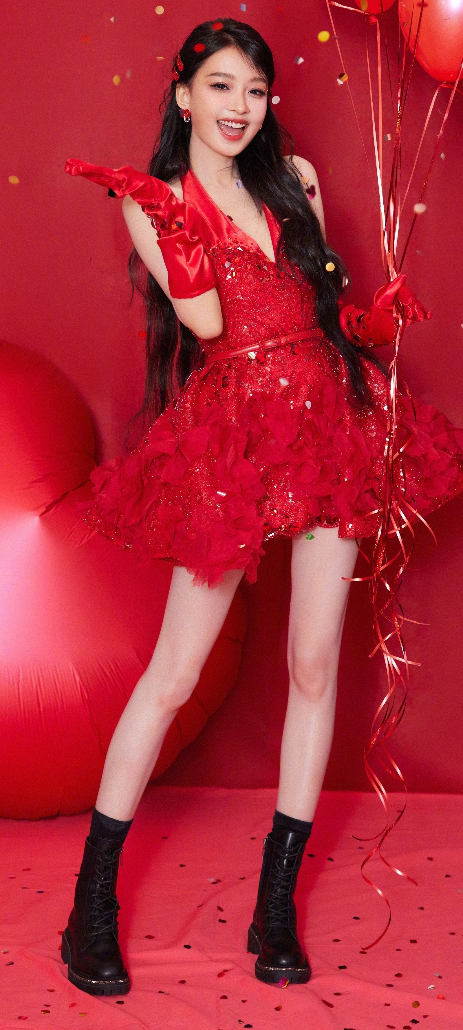 孙怡红裙美腿穿搭壁纸:缕纱倩影,可甜可御。孙怡
