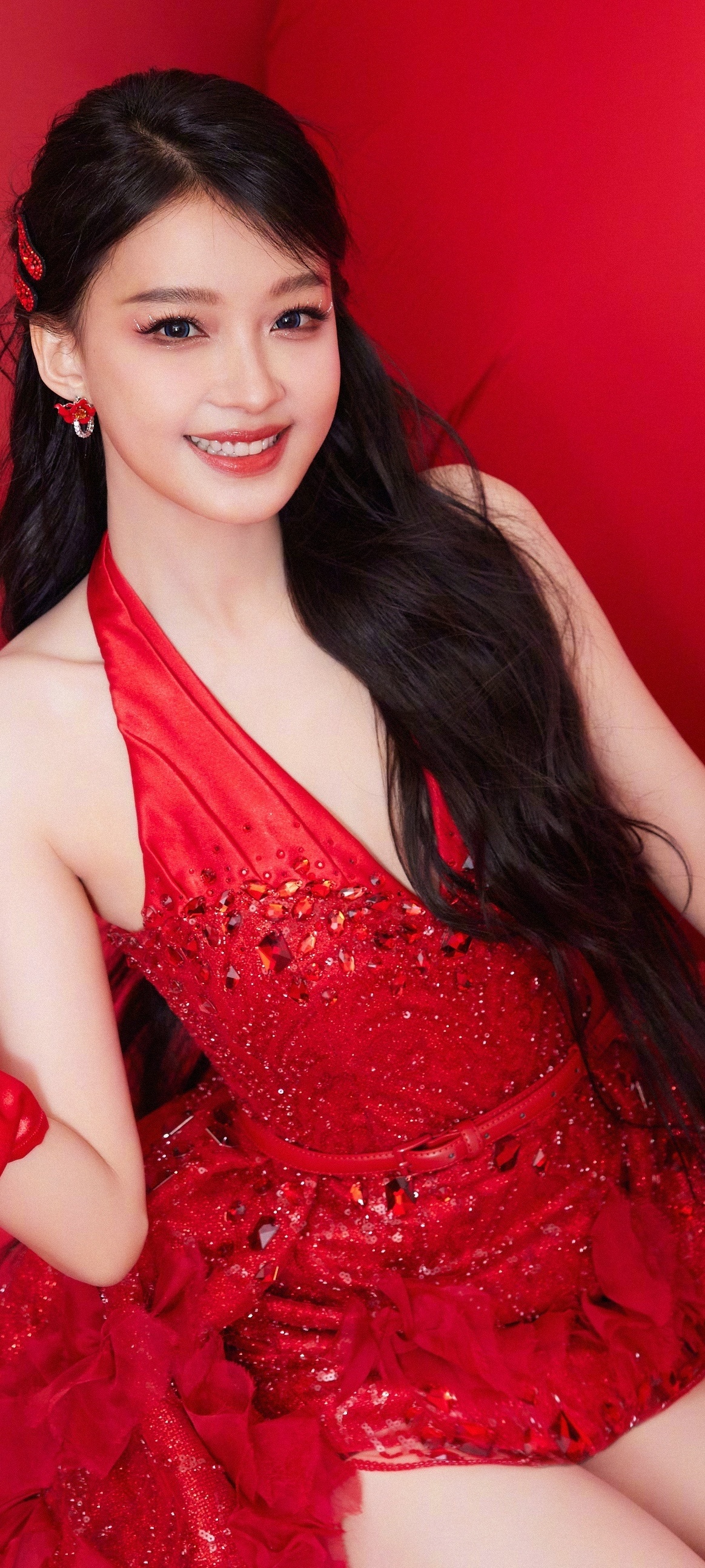 美女壁纸~刘亦菲,白裙繁花刺绣,红宝石点缀,鬓边花饰清雅,温婉矜贵,尽显东方典雅