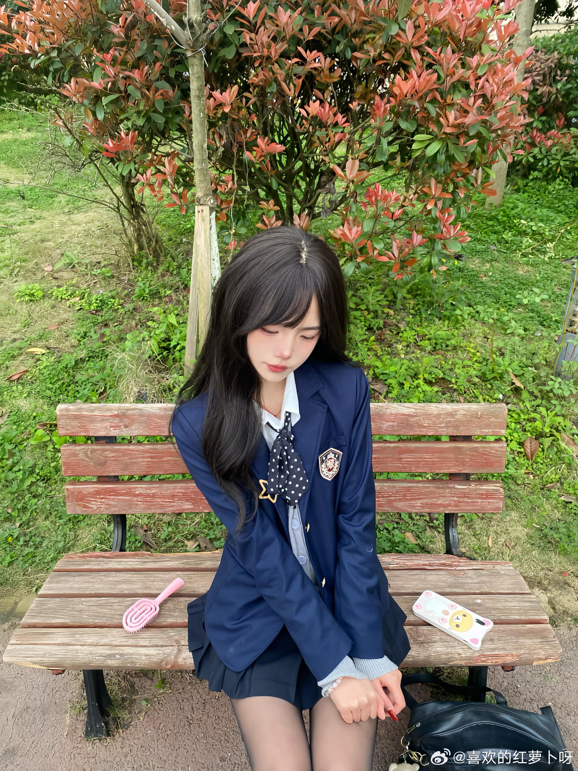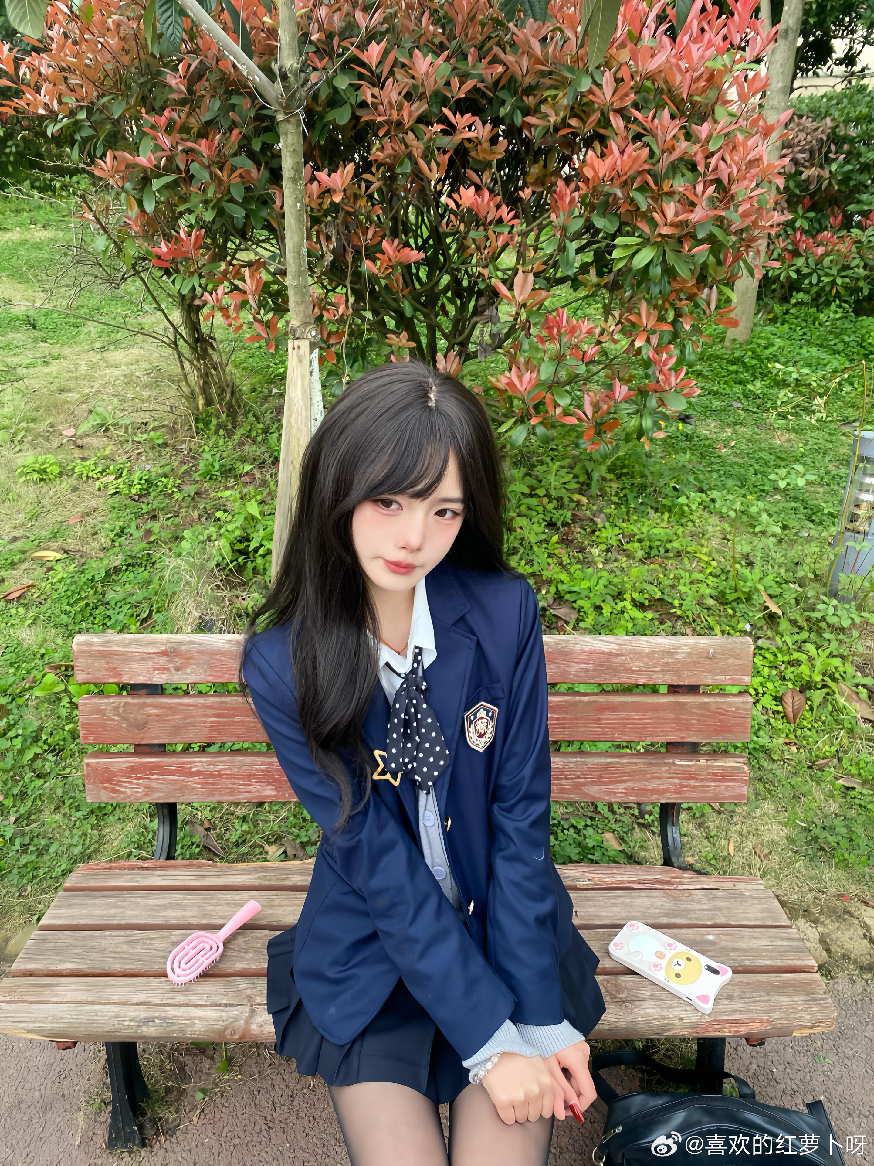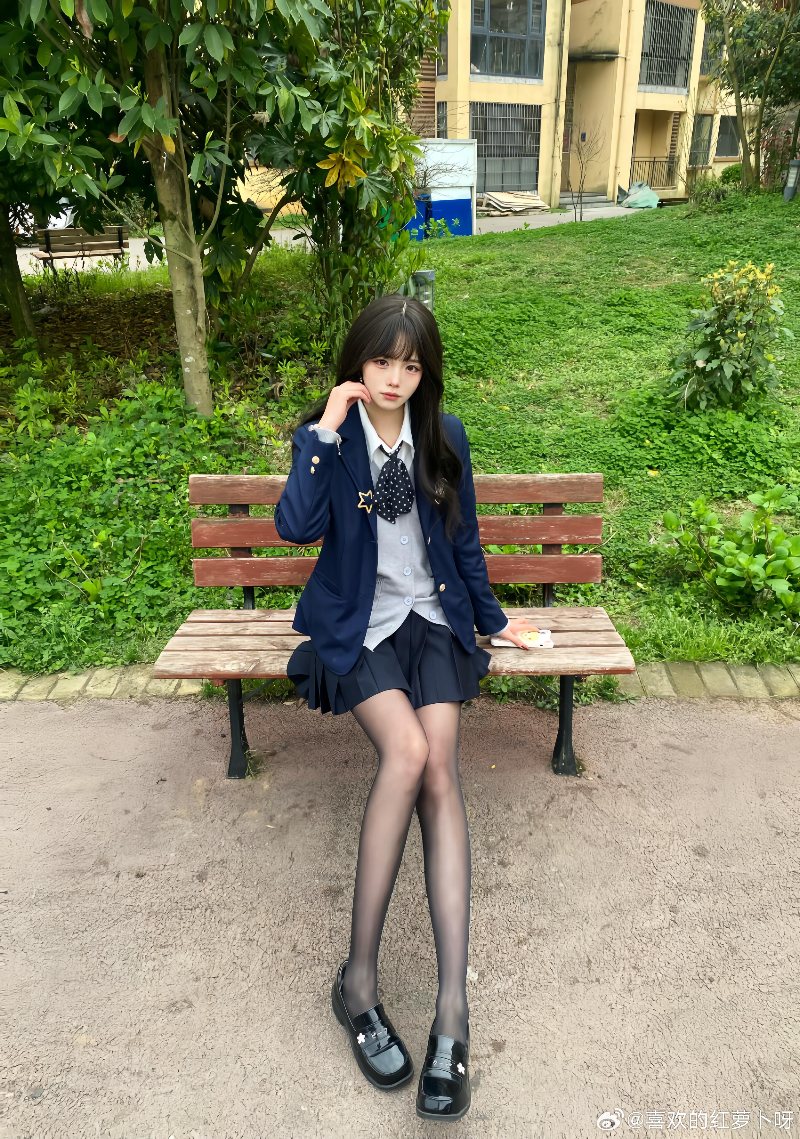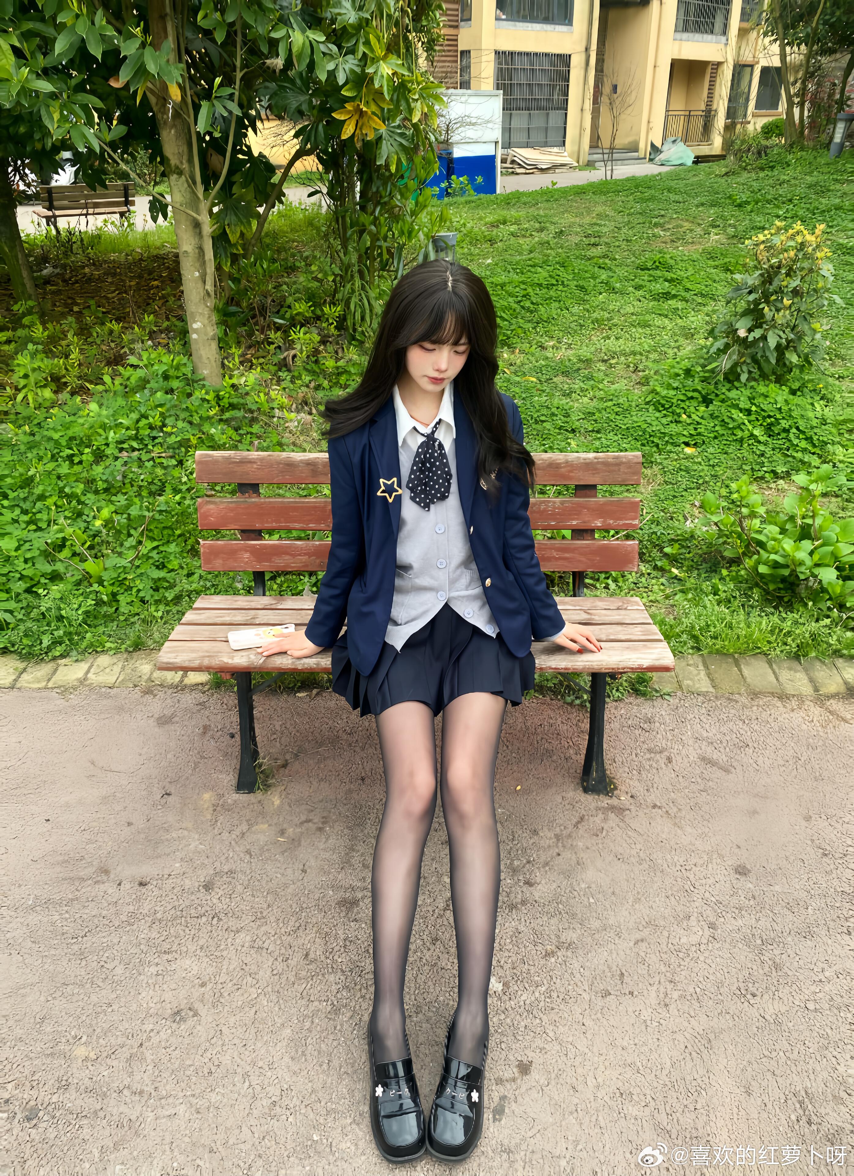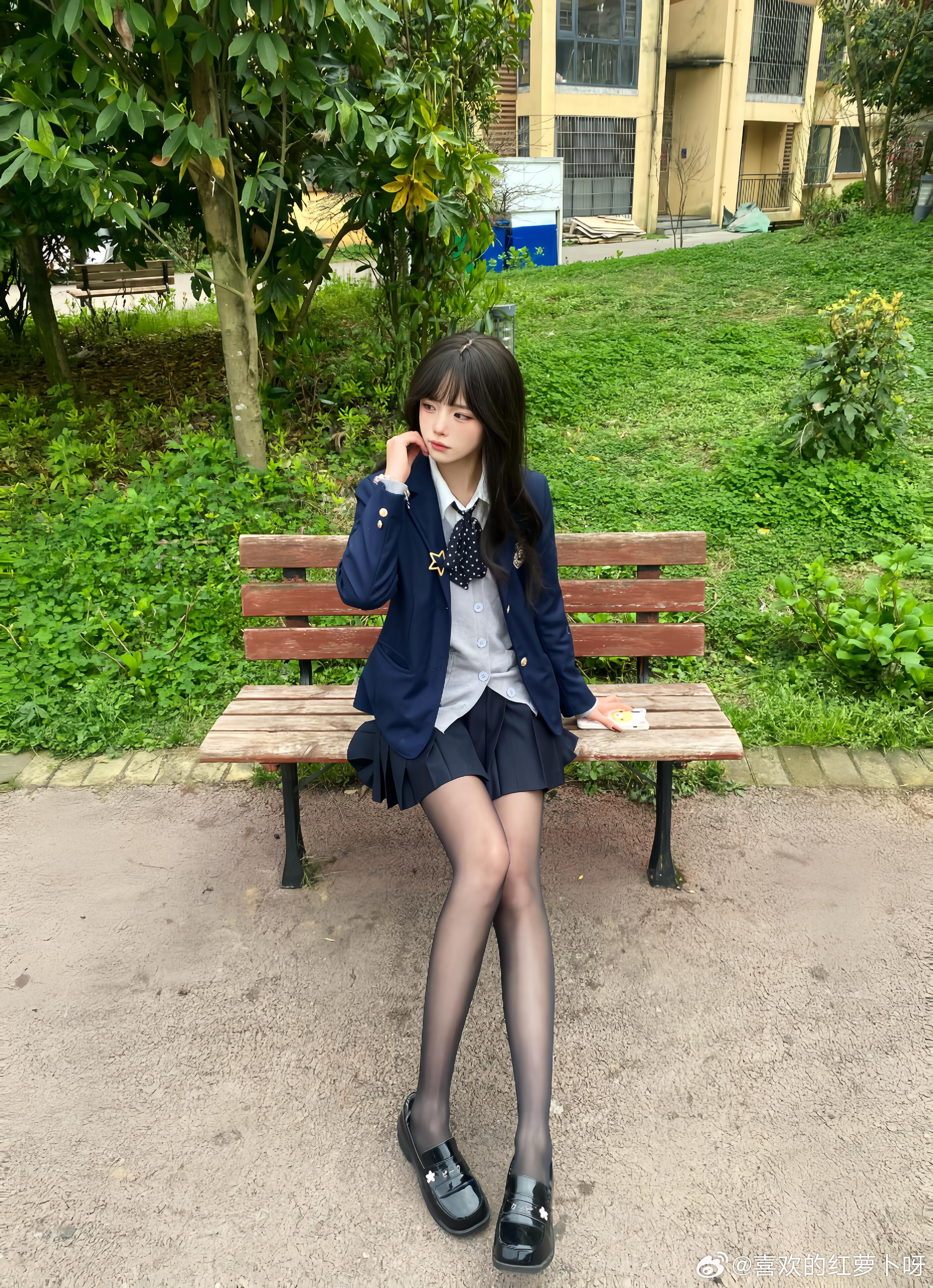 日常里的JK自拍,最是动人。没有刻意摆拍,只有随性自然的元气模样。穿着制服的少女