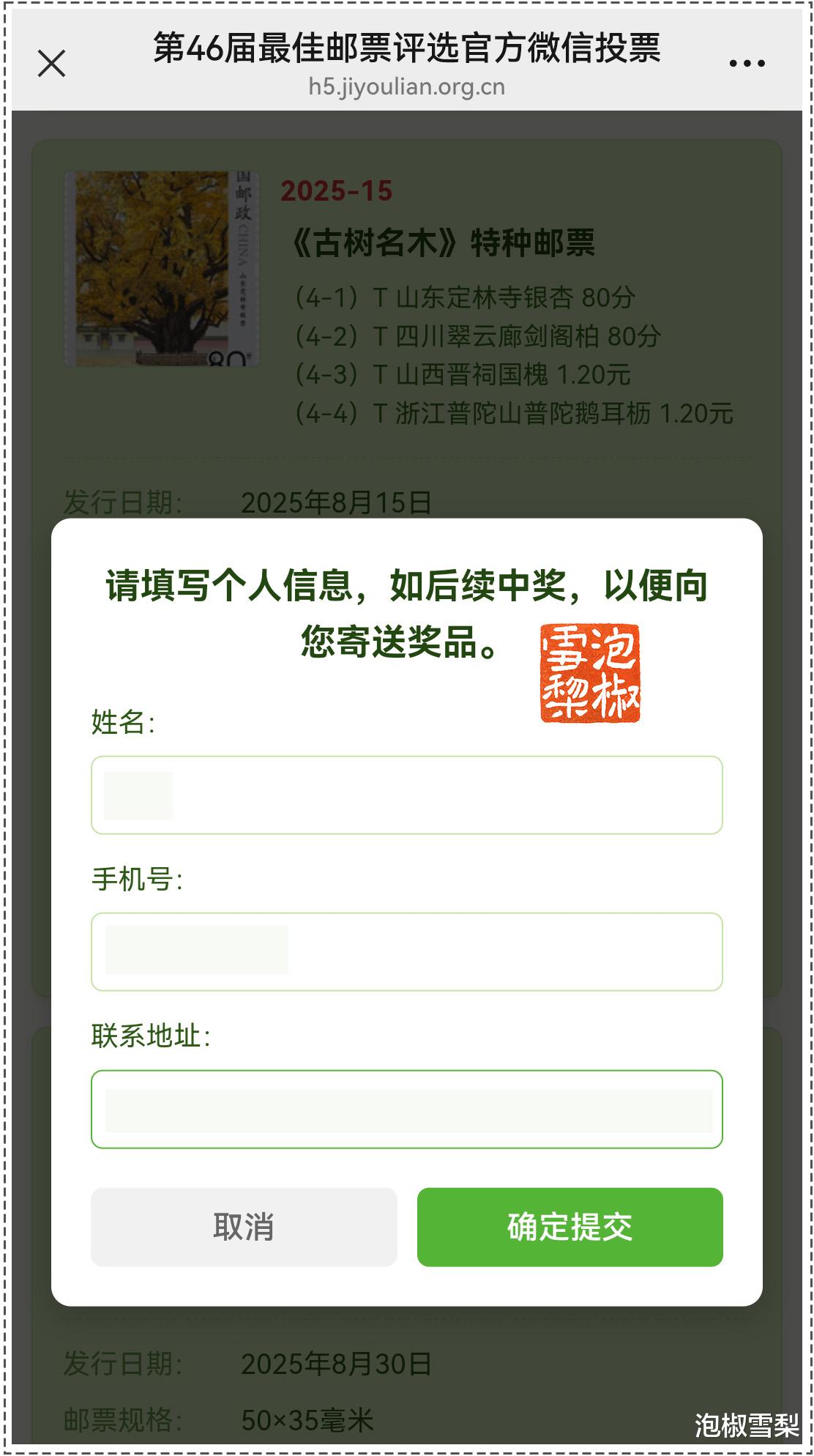一年一次的全国最佳邮票评选活动开始了,很多集邮者一直不清楚如何参与投票,更是对获奖情况一无所知。今天泡椒雪梨就为大家详细讲解下最佳邮票评选参与方式,以及获奖规则,每一步都有截图,包教包会。