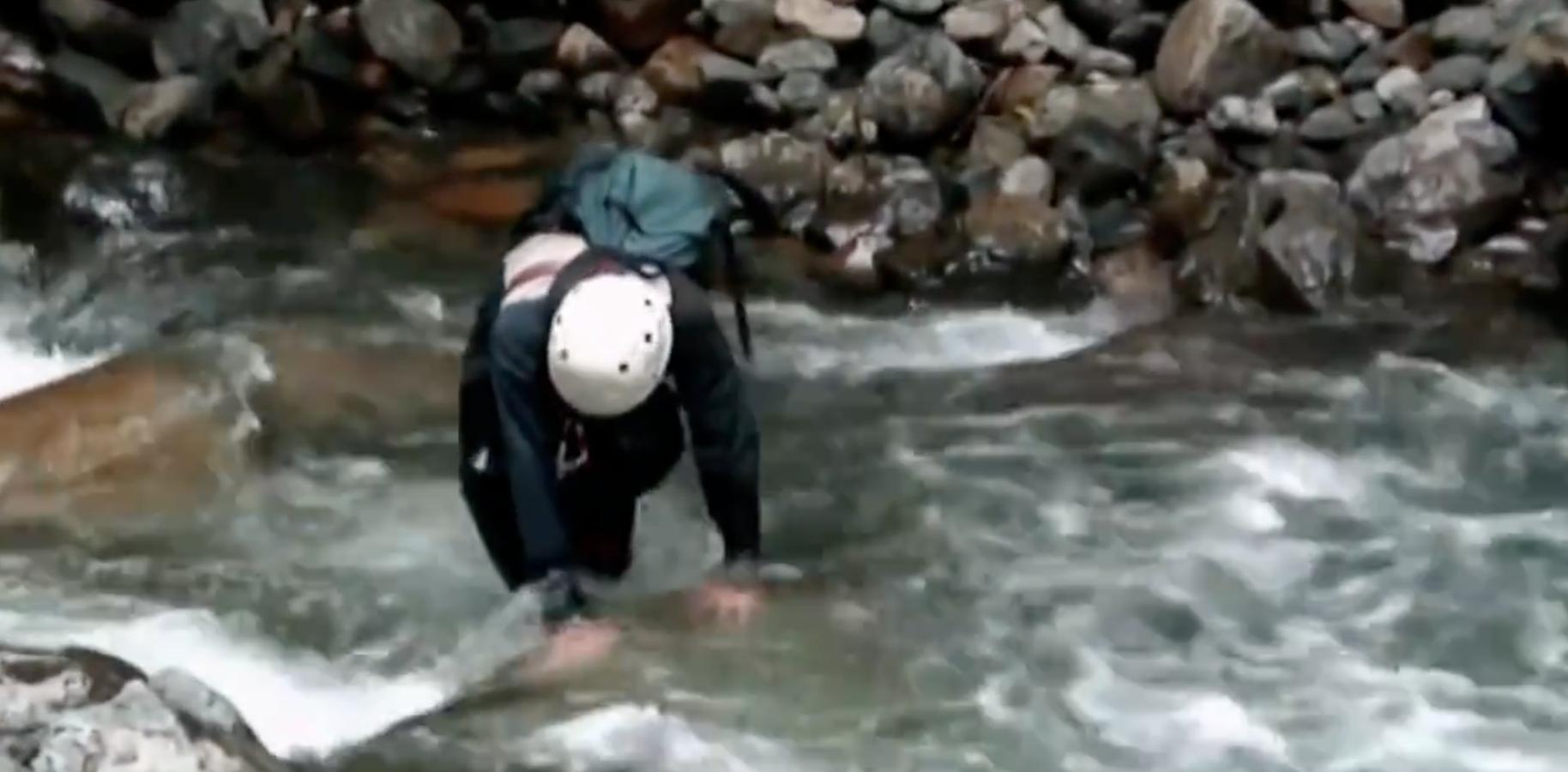 在和向导分别之后,两个人顺着山坡爬到山顶。但他们在山顶一看,这也拍不到坠机现场啊。当时正值中午,山顶也不冷。所以两个人决定下山再试试。但是当他们下山之后。天气突变、骤降暴雨,河流的水位也迅速提升。可能一个不小心,他们就掉进了河里,然后他们就被河水冲到了下游。