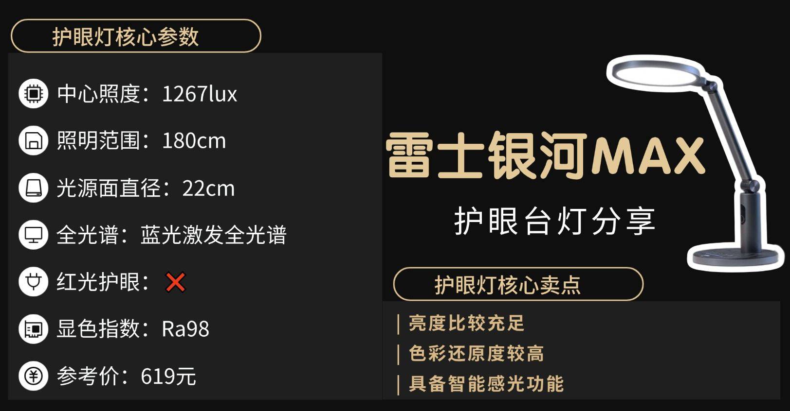 护眼灯哪个牌子更好更专业?雷士银河MAX亮度达到了1267lux,达到国家AA级照度,色温调节范围为3200K-5000K,整体来说可以满足日常使用需求。