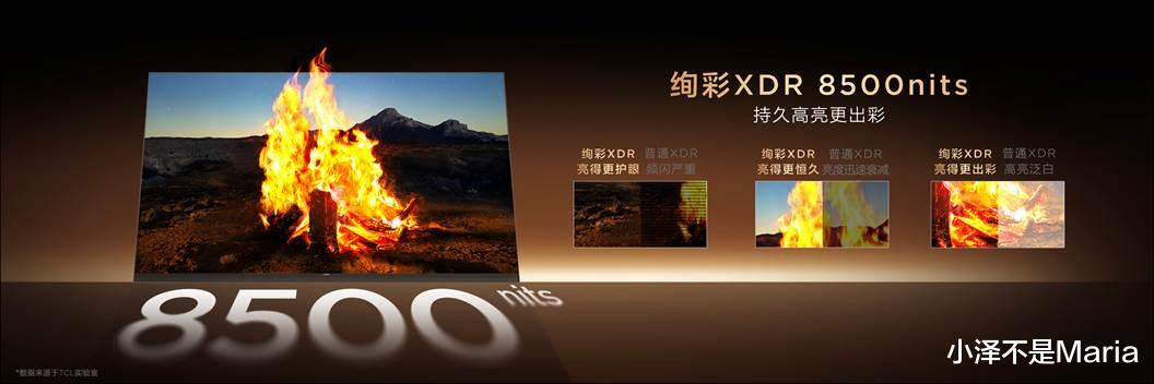 在峰值亮度技术方面,TCL Q10M Pro采用绚彩XDR,最高达8500nits的峰值亮度能让电视显示更多亮暗细节,色彩表现更加真实,画面更加通透。且峰值亮度持续时间远大于普通峰值亮度,实现了高亮不褪色,画面更出彩。