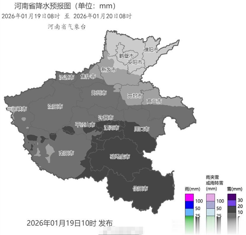 从今天的降水量预报图可以得知,河南地区的降雪覆盖真的是太广了,在信阳、驻马店、漯河、周口、许昌等地,还出现了大雪甚至暴雪天气,而对于信阳等河南的南部地区,降雪随时会转变成冻雨天气,对于出行的朋友们,一定要注意天气变化。