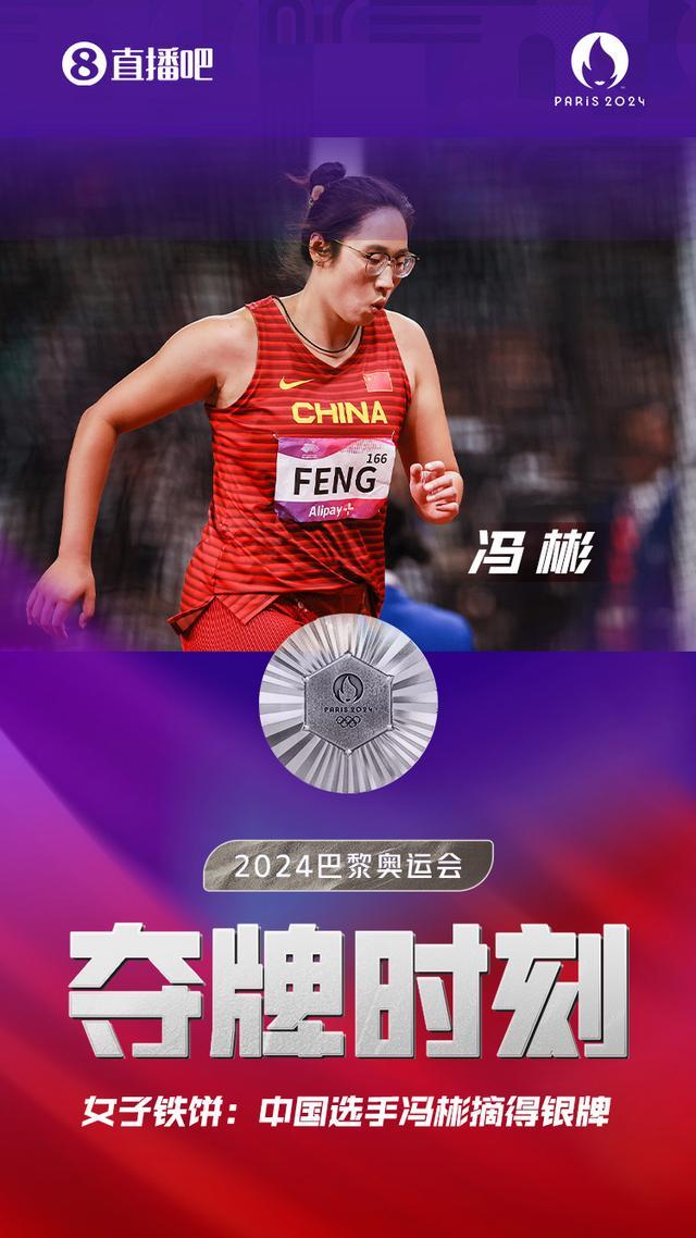 11、2024年08月06日凌晨,冯彬夺得田径女子铁饼银牌。