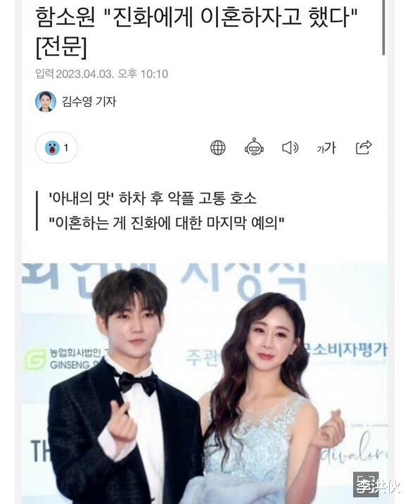 而咸素媛的丈夫陈华的回答也有些似是而非,声称不知道该如何回应大众了,自己也是在接到记者电话后才知道咸素媛单方面发表了离婚声明。