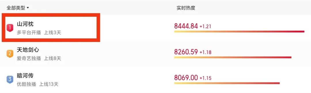 最近古装剧挺多的,比如《暗河传》《天地剑心》《水龙吟》等等,为什么《山河枕》能在这么多古装大剧夹击之下,后来者居上,成为近期最大的爆款?