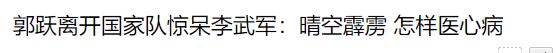 新浪体育——郭跃离开国家队惊呆李武军:晴空霹雳 怎样医心病