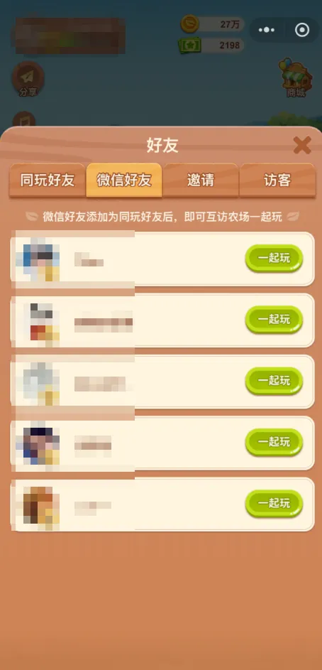 只有将微信 / QQ 好友添加为「同玩好友」后,才能互访农场一起玩。