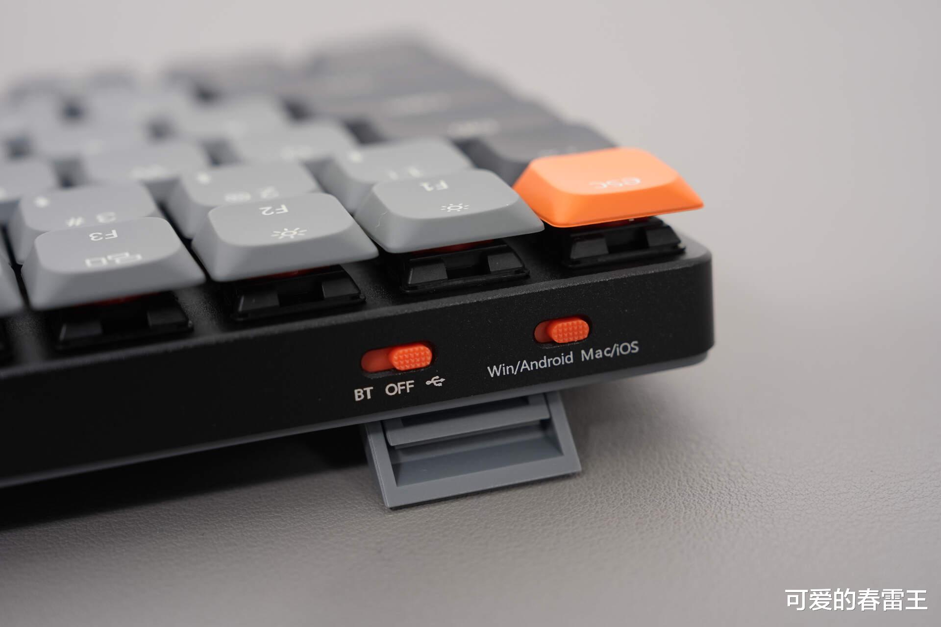 还有一个小细节我很喜欢,键盘正面左侧有模式切换和系统切换开关,中间是Type-C接口,操作起来很方便,不用翻到背面去摸索,对于我这种怕麻烦的人来说,真的太贴心了。