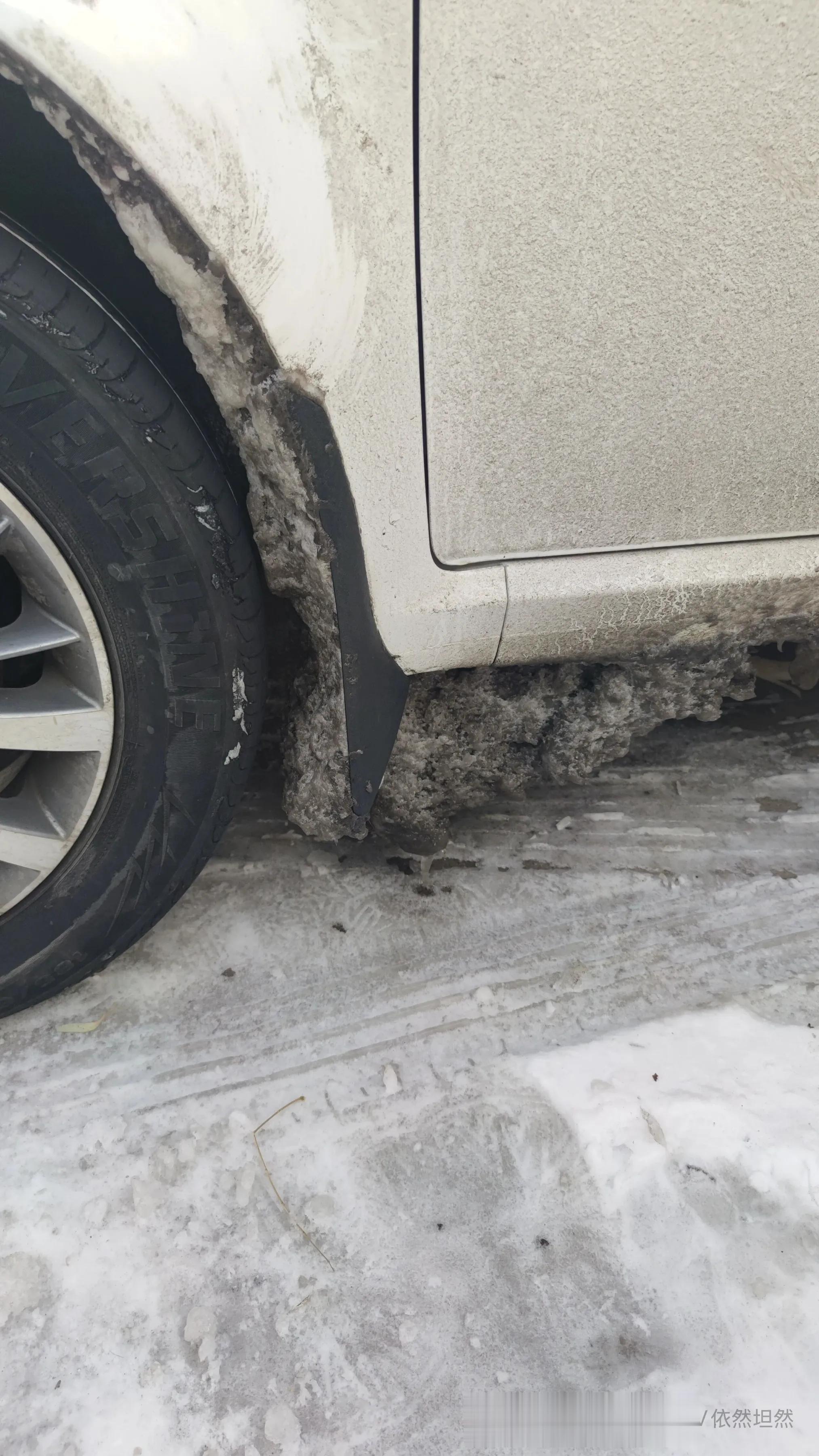 首先,冻上一夜的冰疙瘩,第二天上路会随着行驶不断挤压堆积,直接把挡泥板憋变形甚至撑裂。