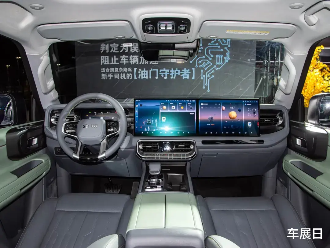 车机内置高通骁龙8155芯片,支持AI语音情景式对话,前排座椅有加热/通风/按摩功能。还支持高快NOA领航等驾驶辅助功能,车机搭载360安全卫士,支持Carplay车机互联。采用非承载式车身,配备全地形智电ATS控制系统等。