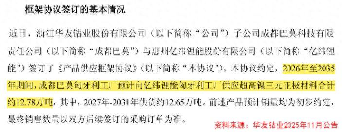 亿纬锂能的十年长单并非偶然,而是华友钴业深度绑定全球下游龙头的缩影。