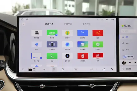 拉开车门,鸣沙流金环保麂皮内饰立刻包裹全身 —— 细腻的棕色材质触感堪比豪华车的 Nappa 皮,配合镀铬饰条勾勒出环抱式座舱。点睛之笔是月泉玉樽水晶挡把,透明材质折射出月牙泉般的光影韵律,转动时的阻尼感精准得像一件工艺品。方向盘采用皮质包裹,支持四向调节且带加热功能,北方冬季上车再也不用 “冻手”。隐藏式空调出风口与三屏联动系统(12.3 英寸仪表 + 双 14.6 英寸中控)融为一体,简约中透着科技感。