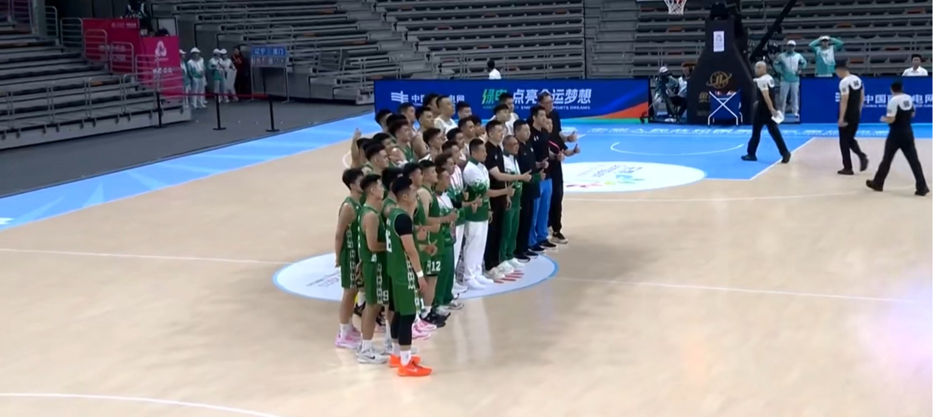 辽宁队和澳门队赛后一起合影,这种温馨的场面,诠释了全运会的意义,赛场上大家顽强拼搏,展现竞技体育精神,场下大家都是朋友,是一家人。
